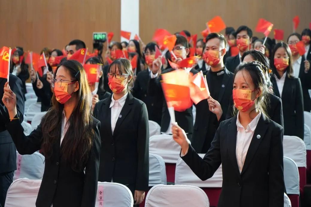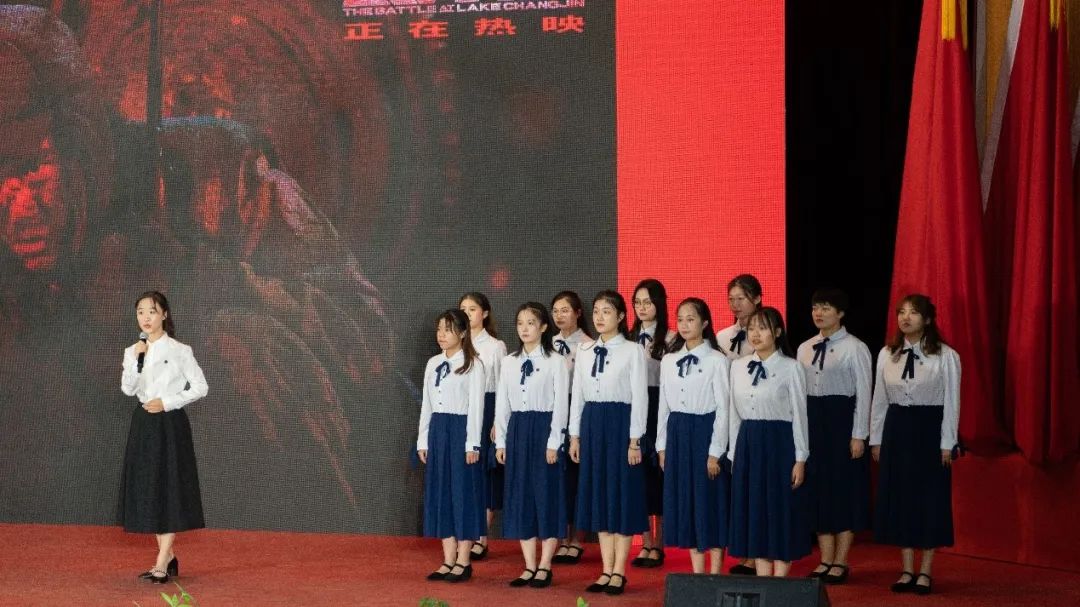 《我和我的祖国》《我们都是追梦人》《在灿烂阳光下》《没有共产党就没有新中国》......大会开始前,全场高唱青春昂扬的红色歌曲,抒发师生们对党的热爱和祝福。