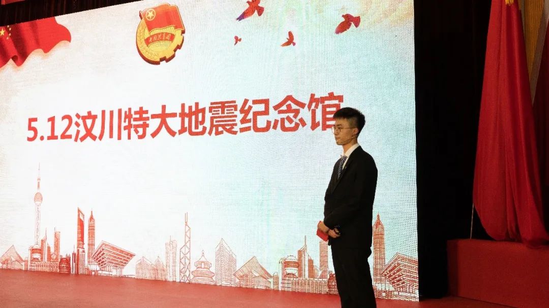 宋舰同学作为来自汶川的团委宣讲团代表,化身为5.12汶川特大地震纪念馆的讲解员,带领大家回忆那段挥之不去的日子。通过昨日灾区与今日建设的对比,向我们传达了中华民族伟大的抗震救灾精神,让我们感受到了“中国速度”。